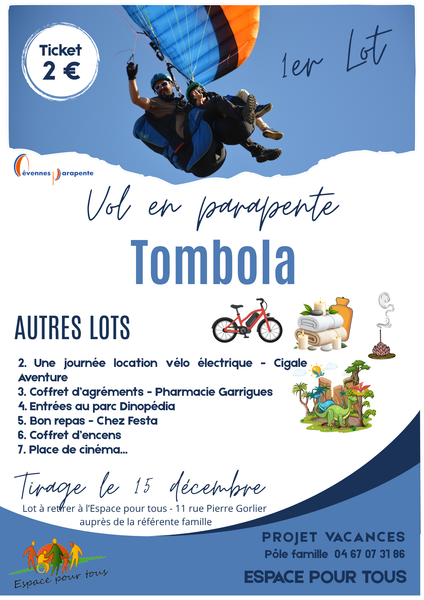 Vous pouvez aussi acheter les billets de tombola à l'Espace Pour Tous - 11 rue Pierre Gorlier