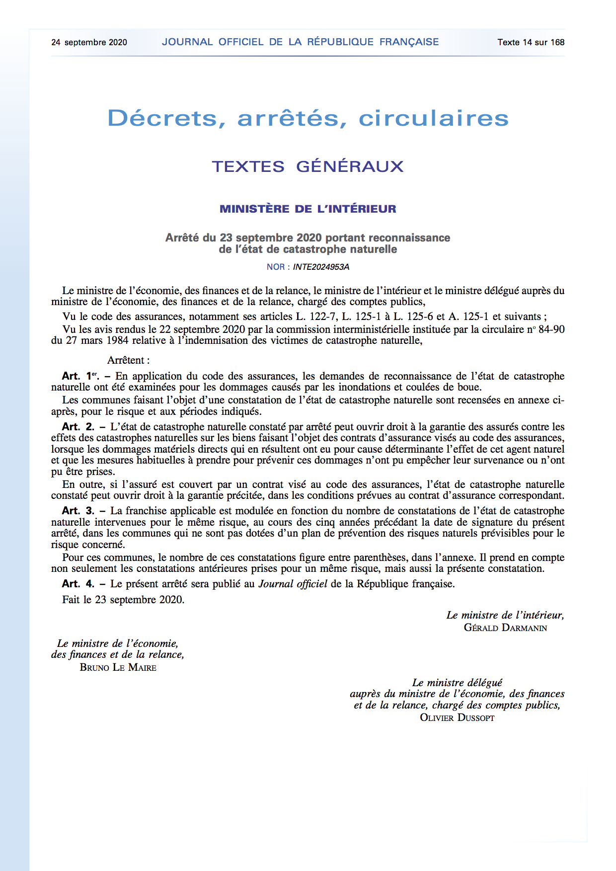 Arrêté de catastrophe naturelle