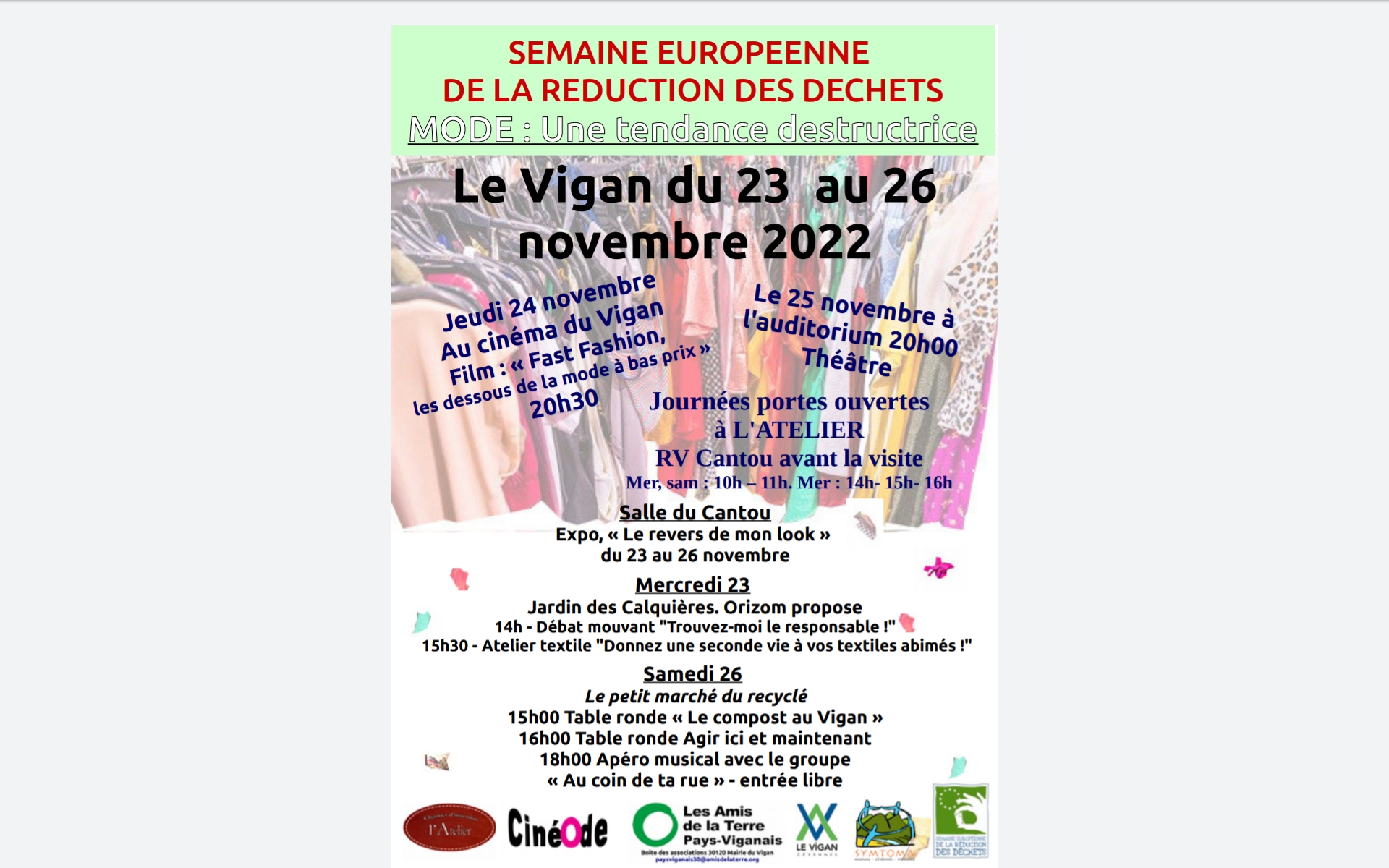 Mercredi 22 novembre à partir de 18h Inauguration de deux nouveaux composteurs collectifs au Vigan 18h – Parc de la […]