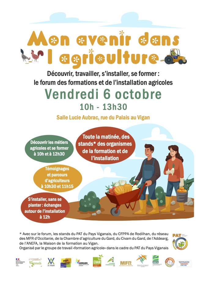 Vendredi 6 octobre de 10h à 13h30 Espace Lucie-Aubrac, rue du Palais au Vigan Vous souhaitez découvrir le monde agricole […]
