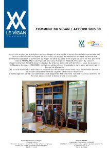 Accueil » Communiqué de presse – Accord SDIS 30 » Après six années de procédures contentieuses et une année intense de médiation proposée par la cour administrative d’appel de Marseille, un accord de médiation mettant un terme aux différends opposant la commune du Vigan au SDIS du Gard a été signé ce
