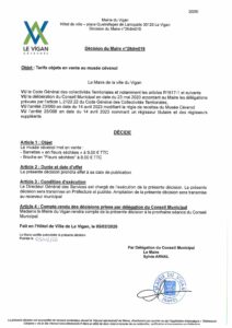 2026DM016 TARIFS OBJETS EN VENTE AU MUSÉE CÉVENOL