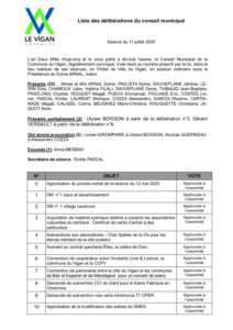 Accueil » PROCÈS VERBAL DU CONSEIL MUNICIPAL DU 11 JUILLET 2025 » Liste des délibérations du 11 juillet 2025
