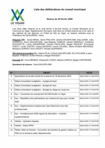 Accueil » PROCÈS VERBAL DU CONSEIL MUNICIPAL DU 20 FÉVRIER 2026 » Liste des délibérations du 20-02-26