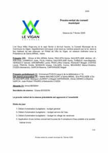 Procès verbal du conseil municipal du 7 février 2025