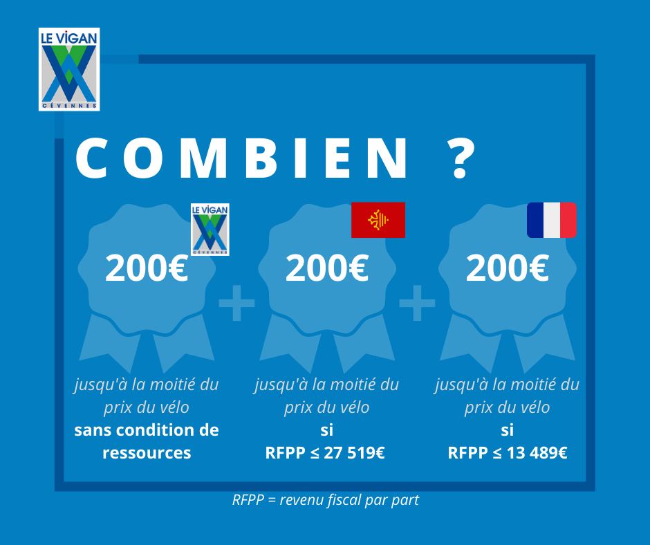 🚴♂️🌍 Pour encourager, quand c’est possible, la pratique du vélo, diminuer localement les émissions de gaz à effet de serre et la pollution de l’air, le conseil municipal a délibéré en faveur de l’instauration d’une aide à l’achat d’un vélo électrique, d’un montant de 200 € maximum et dans la limite de la moitié du prix du vélo, valable y compris pour un vélo cargo ou bi/triporteur (pour les familles et professionnels), acheté dans un commerce du Vigan, pour les habitantes et habitants et les contribuables du Vigan, valable une fois par foyer par an, sur une expérimentation d’un an du 1er janvier au 31 décembre 2021, cumulable avec les aides de la région Occitanie et de l’État (200 € chacune) :