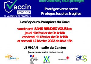 Accueil » Les Sapeurs-Pompiers du Gard vaccinent avec et sans rendez vous au Cantou les 10,11,12 février » affiche centre vaccination Le Vigan_page-0001