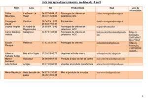 Accueil » Liste des agriculteurs présents au drive du 4 avril de 11h à 13h parc des châtaigniers » Liste drive du 4 avril