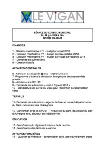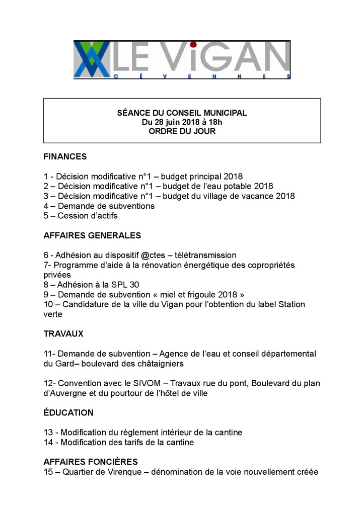 Accueil » Compte rendu du conseil municipal du 28 juin 2018 » 0 -ordre du jour du conseil municipal 28 juin 2018