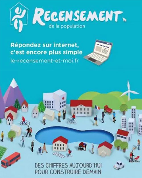En cas d’indisponibilité, les papiers peuvent être retournés sous enveloppe à la mairie ou à l’INSEE au plus tard le 24 février 2018. Pour envoyer vos réponses par internet : www.le-recensement-et-moi.fr et cliquez sur « recensement en ligne ».