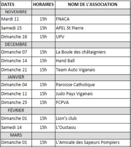 Accueil » Les dates des lotos 2025-2026 » Lotos tableau 2025-2026