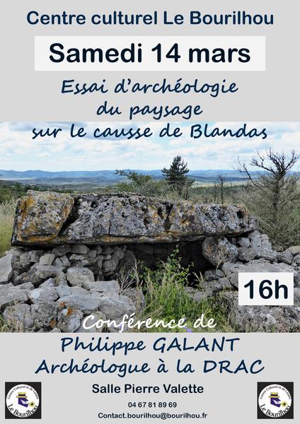 Philippe Galant, archéologue à la DRAC animera la conférence « Essai d’archéologie du paysage sur le Causse de blandas ».
